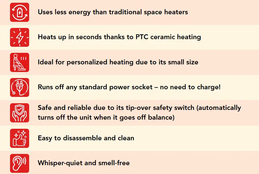 But Heatcore operates at an amazing effiency, delivering POWERFUL heating in just seconds! It’s the perfect way to keep warm while saving big.