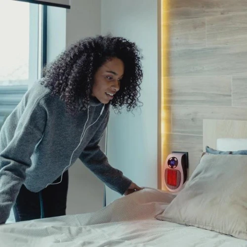 Toasty Heater is a PTC ceramic heater. This means it uses special heating discs to produce enough heat to quickly warm up small spaces. What’s great about PTC heaters like Toasty Heater is that as the heat increases, the power consumption drops – and, most importantly, you and your family stay warm.